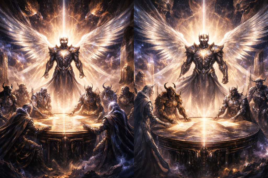 Across countless universes, ancient myths speak of a radiant armored guardian appearing during cosmic disasters. Some cultures describe him as a god of peace, others as a judge of existence, and some fear him as a harbinger of universal reset.